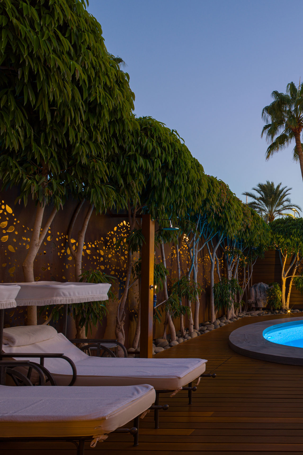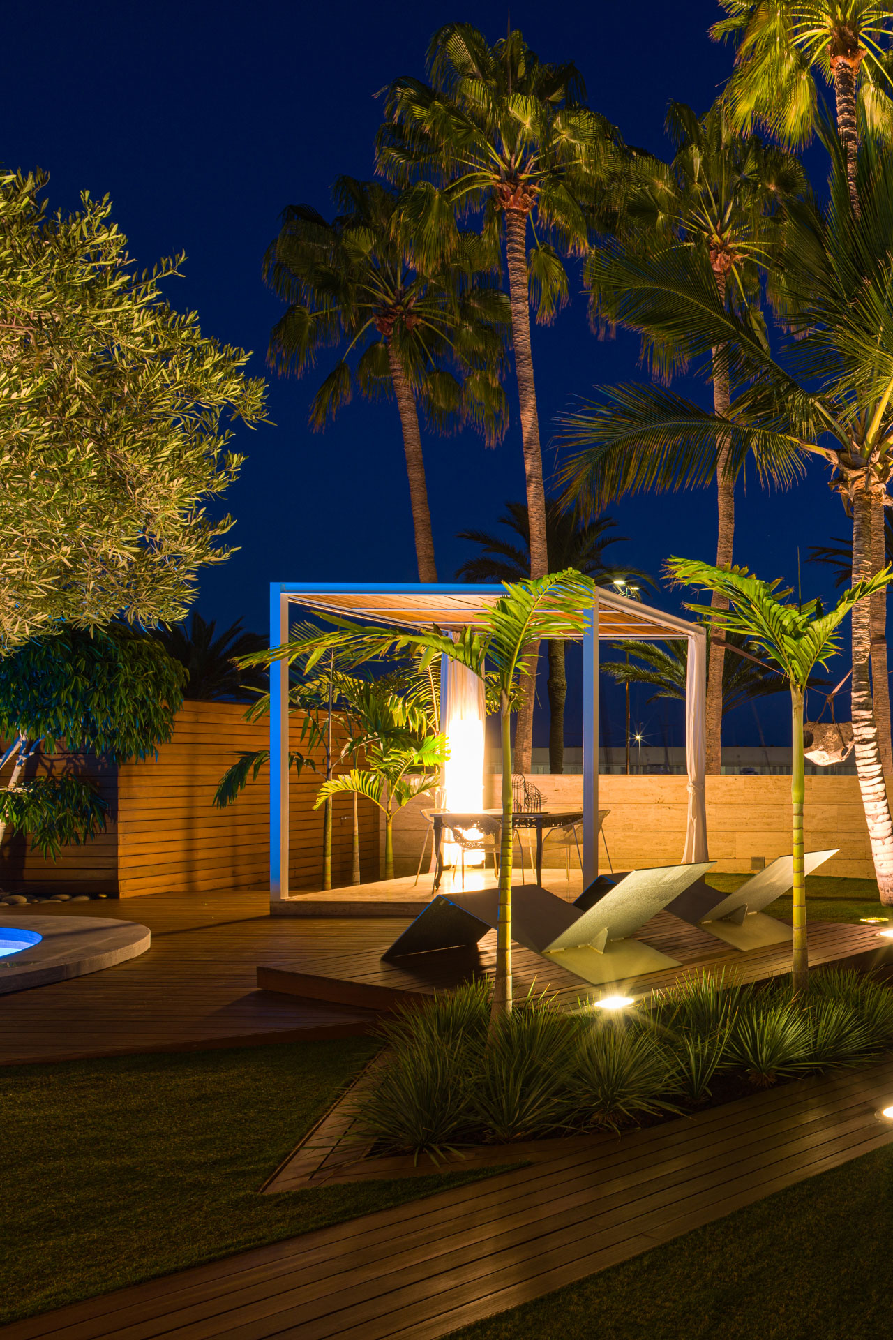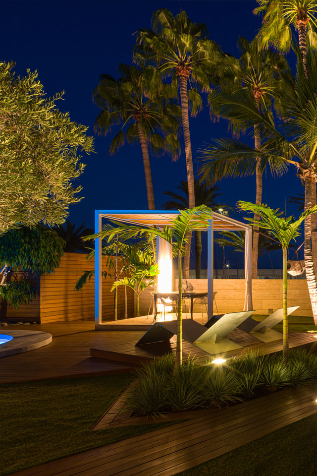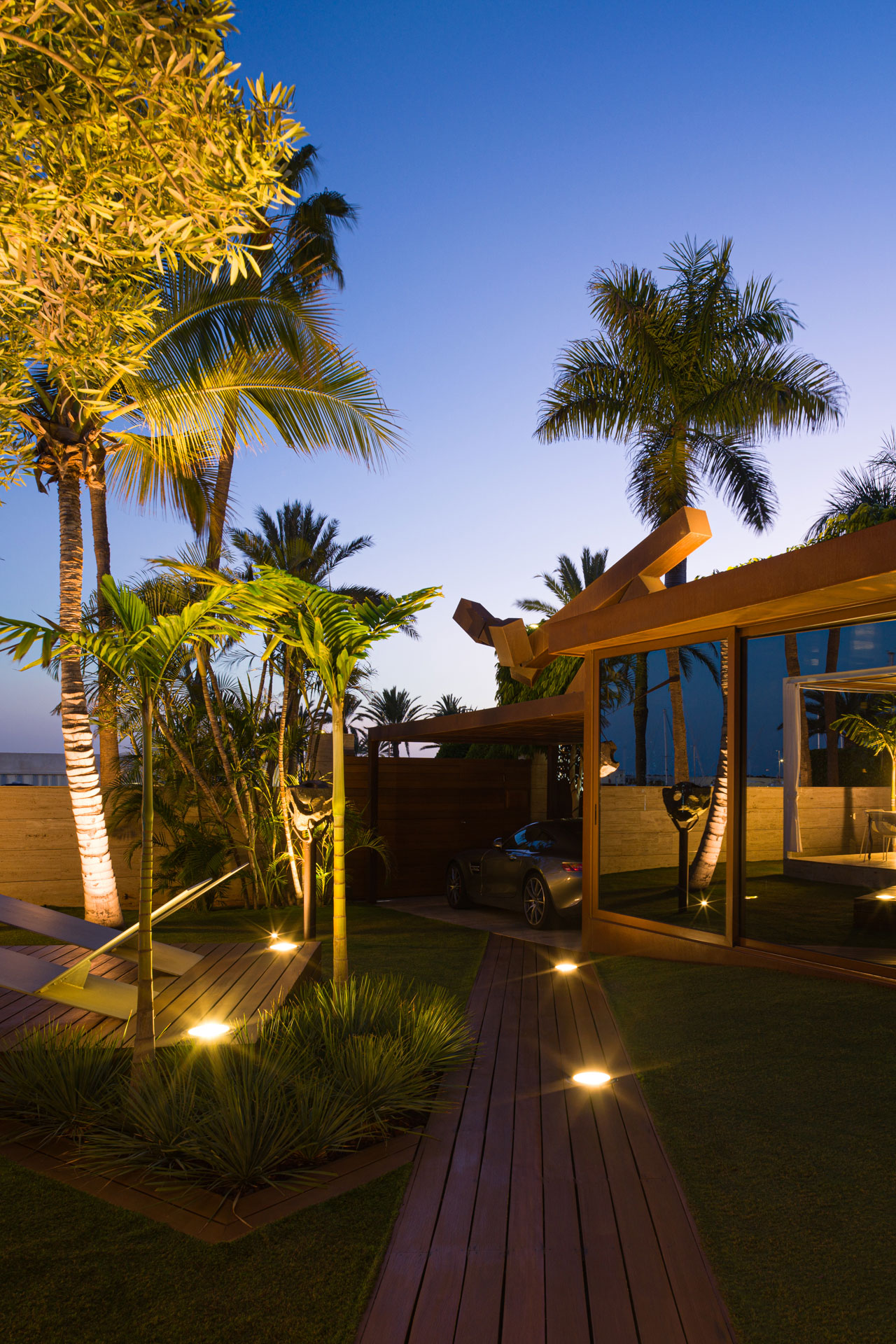 Quizás, la parte más destacable de la propiedad son sus exteriores, cuyo diseño ha sido ejecutado en base a unos elementos creados a medida para VILLA KAI, una piscina iluminada y calefactada coronada con bloques de marmol gris Macael macizo, unas hamacas creadas con aluminio, un olivo centenario, diversas esculturas de Manuel Cyphelly. Los habitantes podrán disfrutar de una suerte de gimnasio con un completo equipamiento de gama alta.